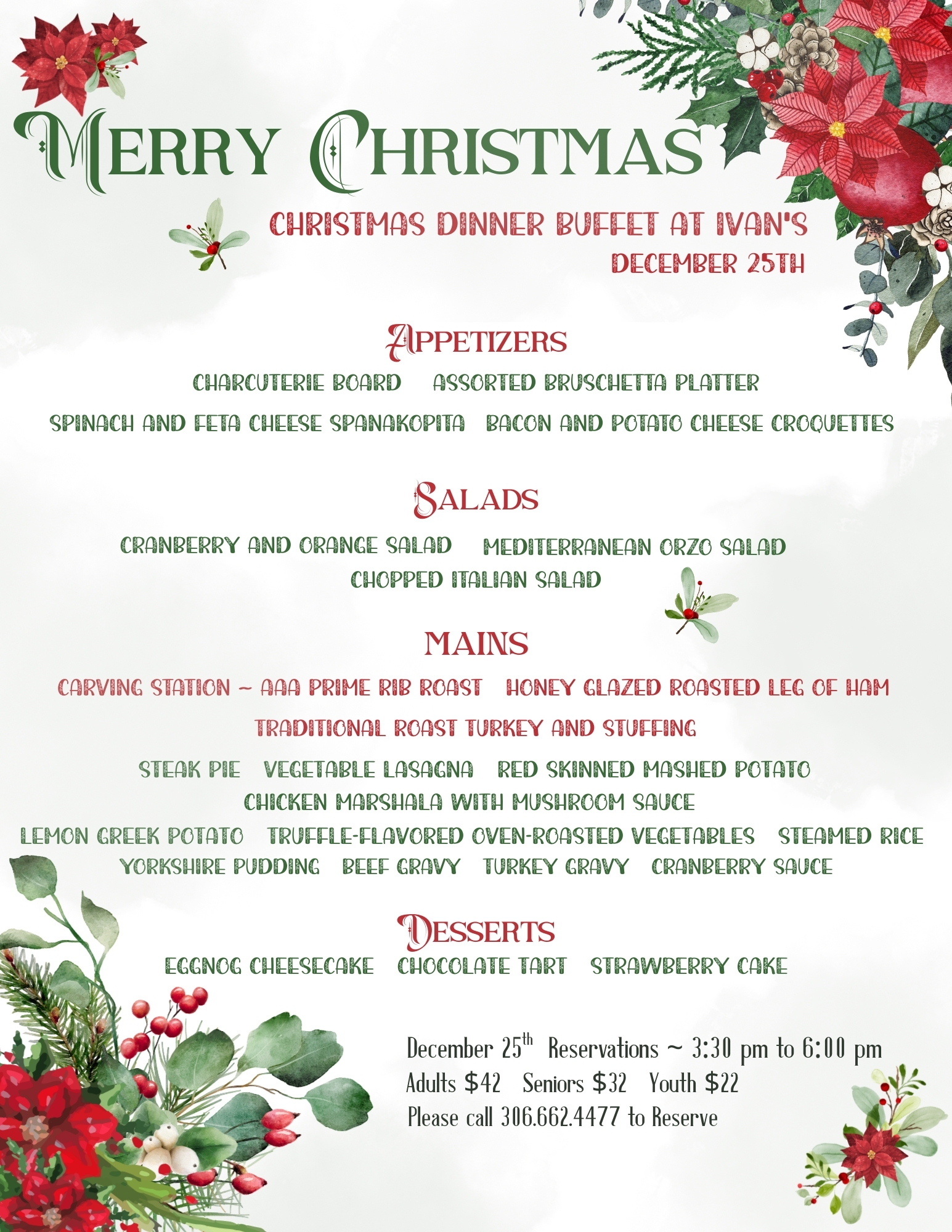 December 25th Reservations – 3:30 pm to 6:00 pm